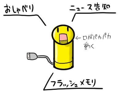 最後にフラッシュメモリ機能です。おしゃべりこけしはフラッシュメモリを内蔵しておりますので、通常のUSBメモリとしても使用可能です。
